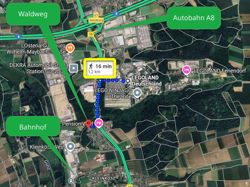 - Autobahn A8 (Ausfahrt Günzburg) – 2 Minuten